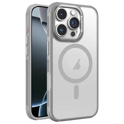 Estuche para Teléfono Magsafe iPhone 16 Pro Marco Lente Metal Esmerilado Piel Enfriamiento (Gris)