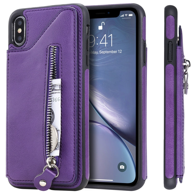 Funda Protectora para iPhone Xs Max Doble Hebilla Cremallera a Prueba de Golpes (Púrpura)
