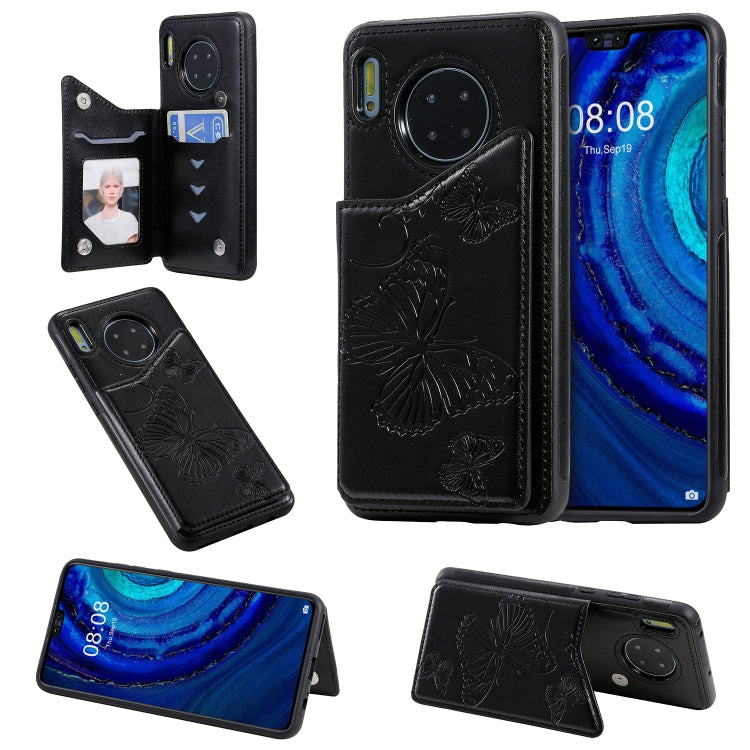 Funda Protectora Huawei Mate30 Patrón Mariposa Soporte Ranuras Tarjetas Marco Fotos (Negro)