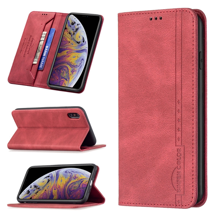 Funda para Teléfono Y Costura iPhone Xs / X Flip Horizontal Cuero Soporte Tragamonedas (Rojo)