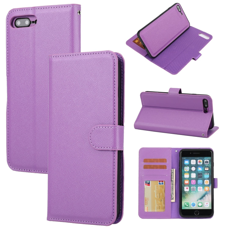 Caja de cuero desmontable textura cruzada para iPhone 8 Plus y 7 Plus (Púrpura)