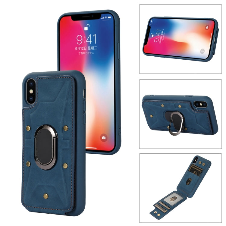 Funda para iPhone X Xs Armor Ring Wallet Back Cover Phone Case (Azul)