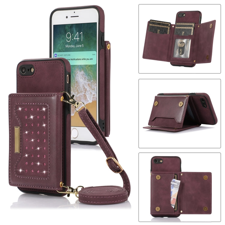 Estuche de Teléfono Cuero Rfid para iPhone 7/8/Se 2020/Se 2022 Tres Pliegues con Cordón (Púrpura)