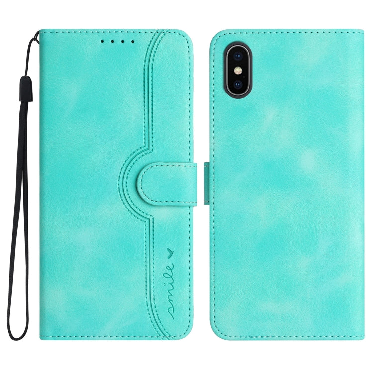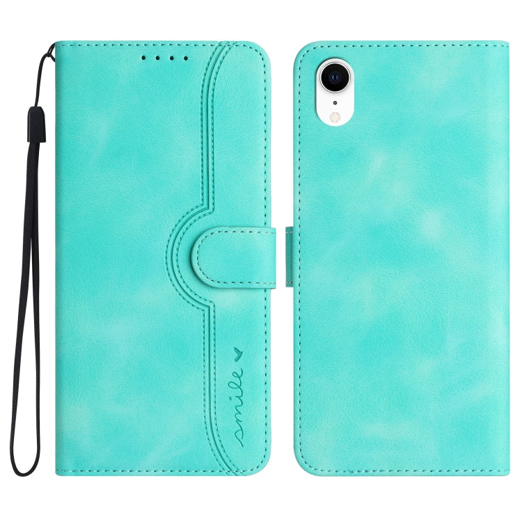 Funda para iPhone Xr Skin Feel con patrón Heart de cuero (Azul Claro)