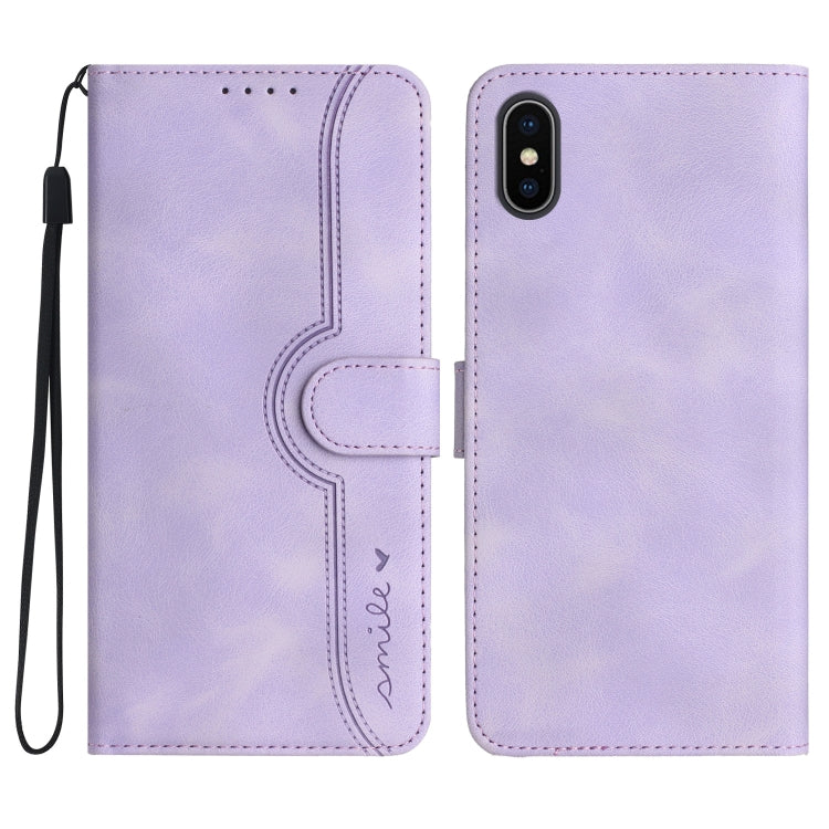Funda para iPhone Xs Max Skin Feel Leather con patrón de corazón (Púrpura)