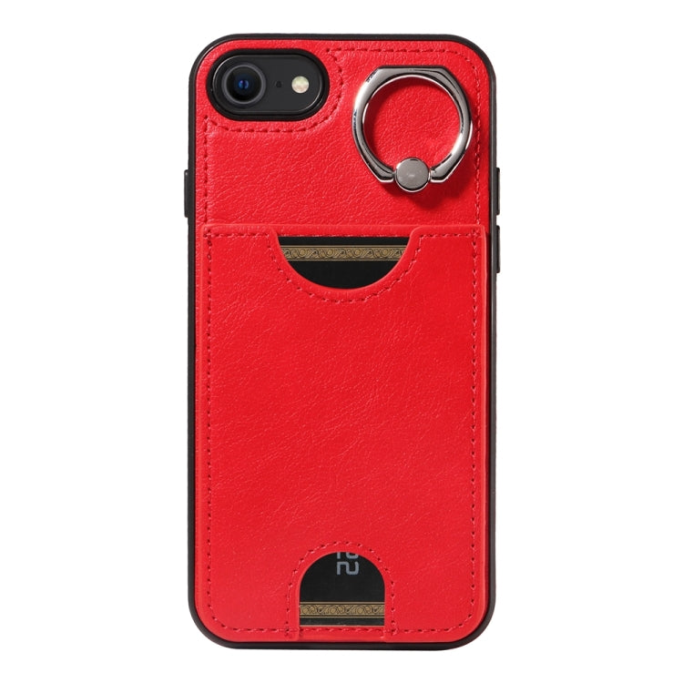 Funda para Teléfono iPhone 2022/2020/8/7 Soporte Anillo Ranura Tarjeta Textura Pantorrilla (Rojo)