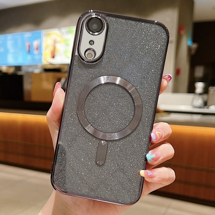 Funda para Teléfono iPhone Xr Magsafe Glitter Galvanoplastia TPU (Negro)