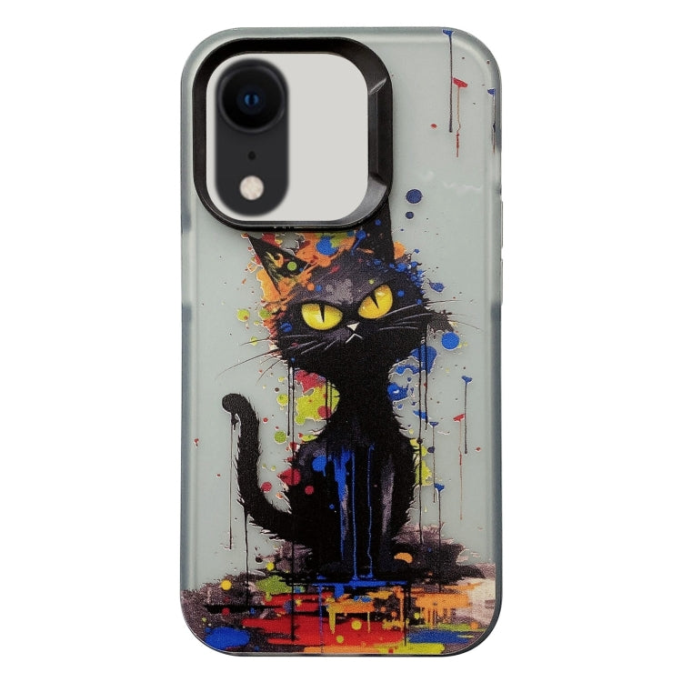Funda para Teléfono TPU iPhone Xr Animales Tinta Color Pintado (Gato Negro)