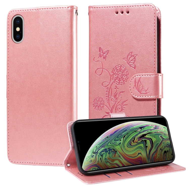 Funda de Cuero con Diseño de Mariposas y Flores en Relieve para iPhone Xs Max (Oro Rosa)