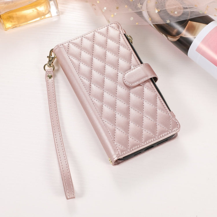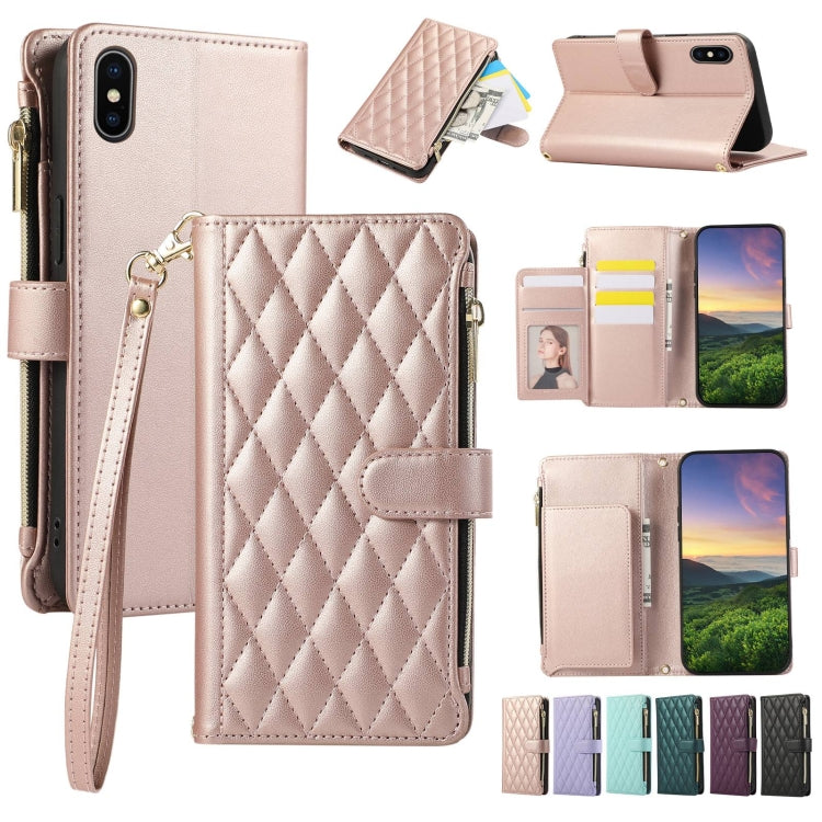 Funda de Cuero Tipo Billetera con Cremallera en Forma de Rombo para iPhone Xr (Oro Rosa)