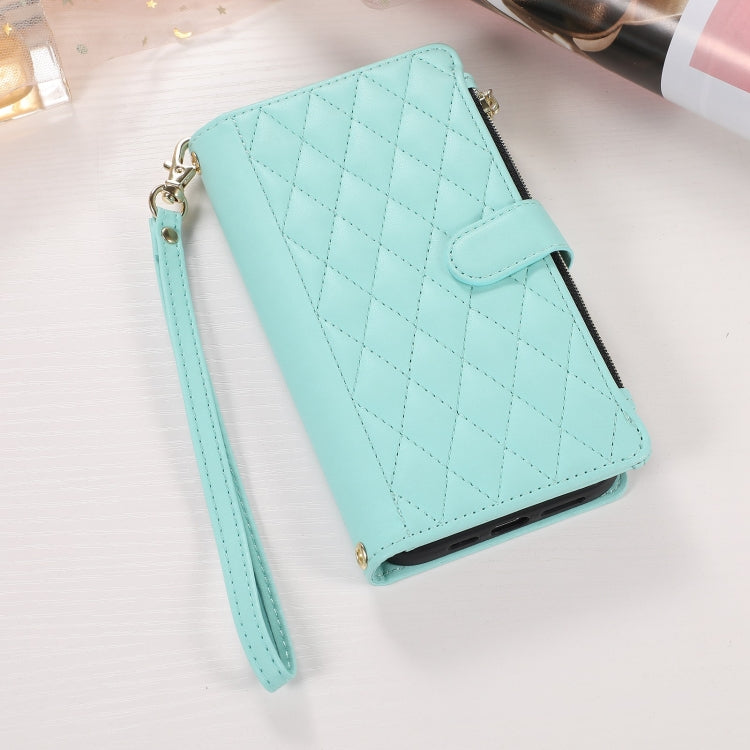 Funda de Cuero Tipo Billetera con Cremallera en Forma de Rombo para iPhone Xr (Cian)