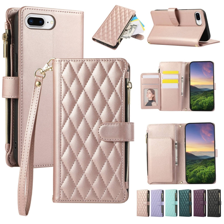 Funda de Cuero Tipo Billetera con Cremallera en Forma de Rombo para iPhone 7 Plus/8 Plus (Oro Rosa)