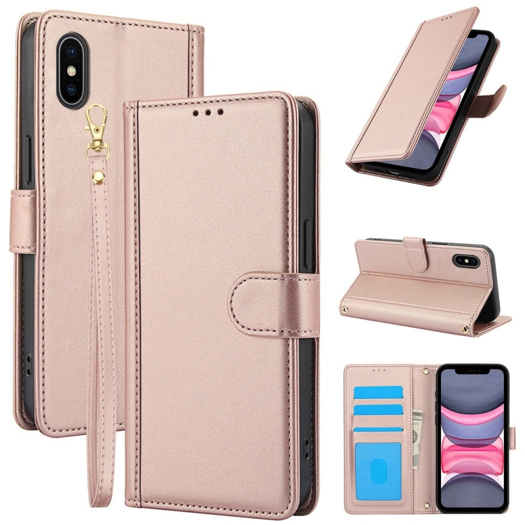 Funda de Cuero para iPhone X/Xs Skin Feel con Ranuras para Tarjetas y Doble Cordón (Oro Rosa)