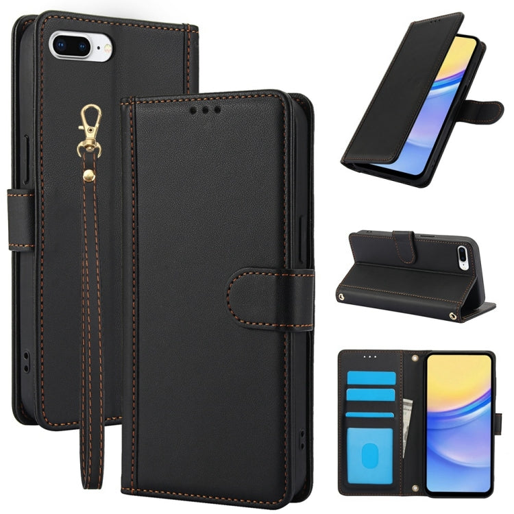 Funda de Cuero para iPhone 7 Plus/8 Plus con Ranuras para Tarjetas y Doble Cordón (Negro)