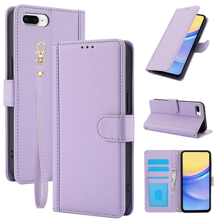 Funda de Cuero para iPhone 8 Plus/7 Plus Ranura Múltiples Tarjetas Cordón (Morado)
