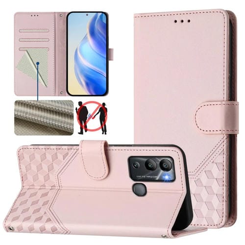 Funda de Cuero Rfid con Relieve en Panal para Infinix Zero 20 (Rosa)