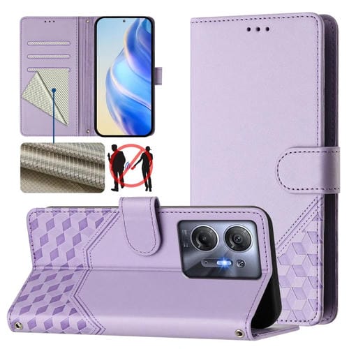 Funda de Cuero Rfid con Relieve en Panal para Teléfono Infinix Zero 20 (Morado Claro)