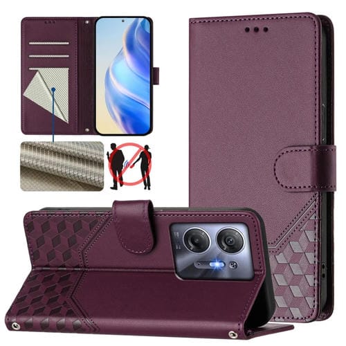 Funda de Cuero Rfid con Relieve en Panal para Infinix Note 30 Pro 4G (Violeta)