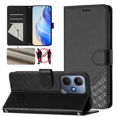Funda de Cuero Rfid con Relieve en Panal para Infinix Hot 50 5G (Negra)