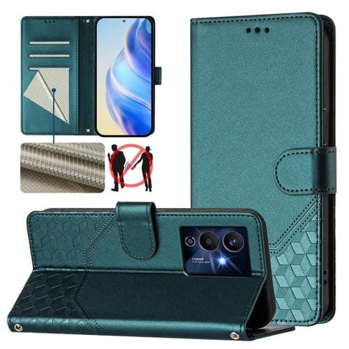 Funda de Cuero Rfid con Relieve en Panal para Infinix Zero 20 (Verde Pavo Real)