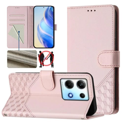 Funda de Cuero RFID con Relieve en Panal para Infinix Note 30 5G/4G (Rosa)