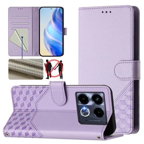 Funda de Cuero Rfid con Relieve en Panal para Infinix Note 40X 5G (Morado Claro)