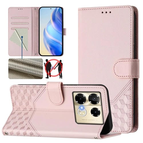 Funda de Cuero Rfid con Relieve en Panal para Infinix Note 40 5G (Rosa)