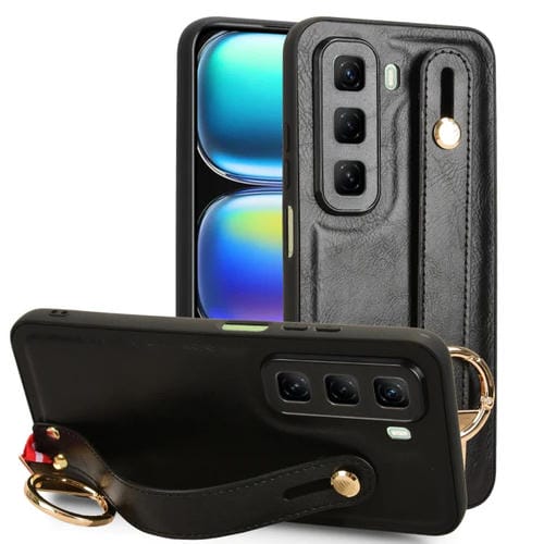 Funda de Cuero con Correa para Muñeca para Infinix Hot 40/40 Pro (Negra)