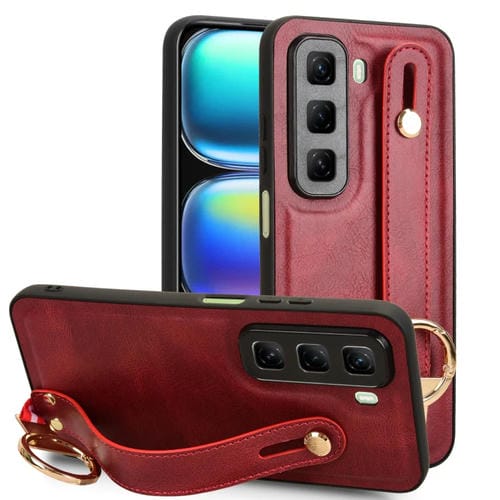 Funda de Cuero con Correa para la Muñeca para Infinix Hot 40/40 Pro (Roja)