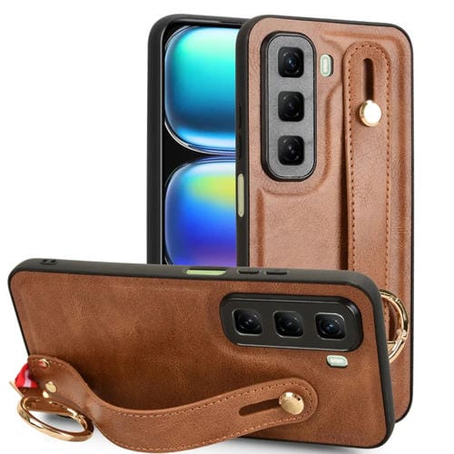 Funda de Cuero con Correa para la Muñeca para Infinix Hot 40/40 Pro (Marrón)