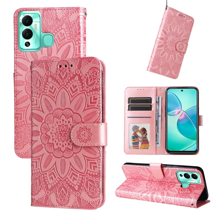Estuche para teléfono Infinix Hot 12 de cuero con estampado de girasol en relieve (Rosa)