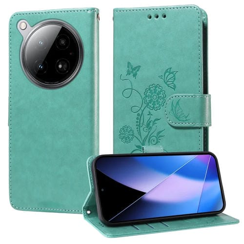 Funda de Cuero para Infinix Zero 40 4G/5G con Diseño de Mariposas y Flores en Relieve (Verde)