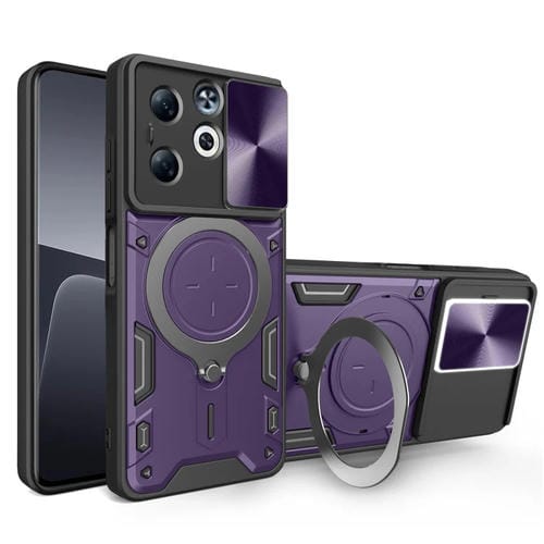 Funda para Teléfono Infinix Smart 8 Plus con Soporte Magnético Deslizante y Textura de Cd (Morado)