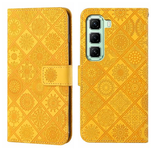 Funda de Cuero con Patrón en Relieve Estilo Étnico para Infinix Note 30I (Amarillo)