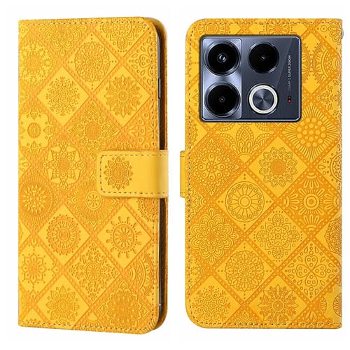 Funda de Cuero con Patrón en Relieve Estilo Étnico para Infinix Note 40 Pro (Amarillo)