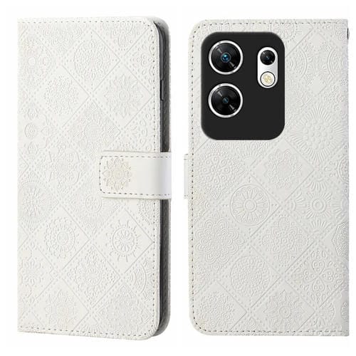 Funda de Cuero con Patrón en Relieve Estilo Étnico para Infinix Note 30 (Blanca)