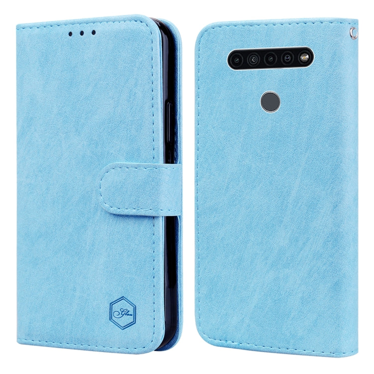 Funda para Teléfono LG K51 Skin Feeling Oil Leather Texture PU + TPU (Azul Claro)