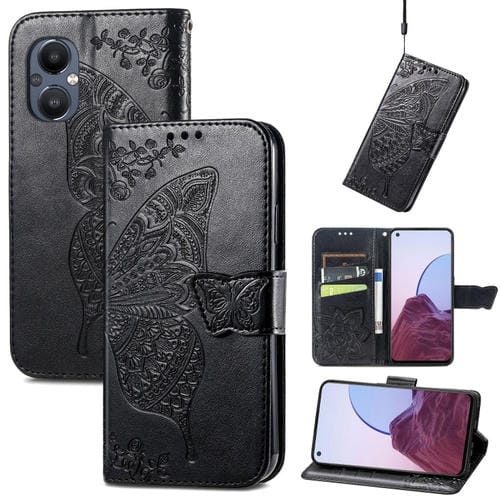 Funda Flip Leather para OnePlus N20 5G Butterfly Love Flower (Negro)
