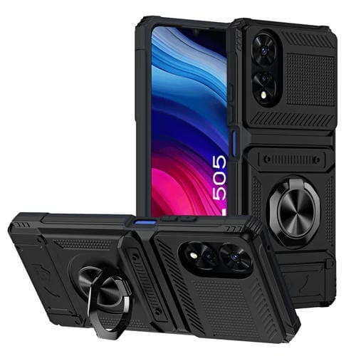 Funda Híbrida TPU y PC para TCL 50 Xl 5G con Soporte de Anillo de Metal (Negro)