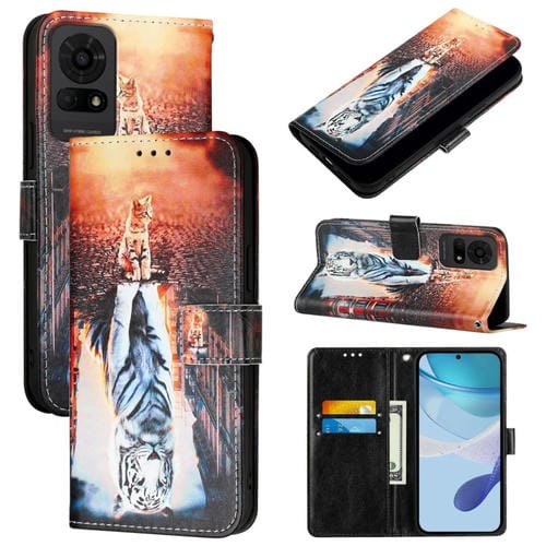 Funda de Cuero para TCL 40 XL/40T T608DL con Diseño de Gatos y Tigres (Liso)