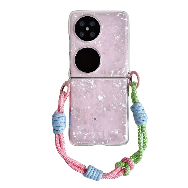 Estuche para Huawei Pocket 2 con Patrón de Corazón y Textura de Concha Nacarada con Pulsera (Rosa)