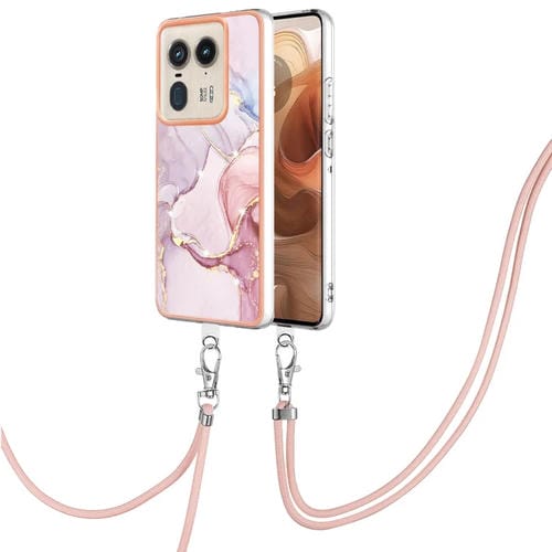 Estuche para Motorola Edge 50 Ultra con Imd Doble Cara y Galvanoplastia Mármol con Cordón (Oro Rosa)