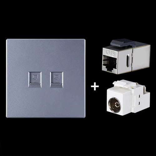 Módulo de Red Cat.6 Blindado, Panel de Puertos Dual, Pasador Blindado y Toma de Teléfono (Gris)