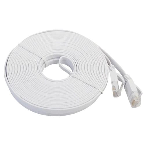 Cable LAN Ethernet Plano Ultrafino Cat6 20 Metros Cable de Conexión RJ45 (Blanco)