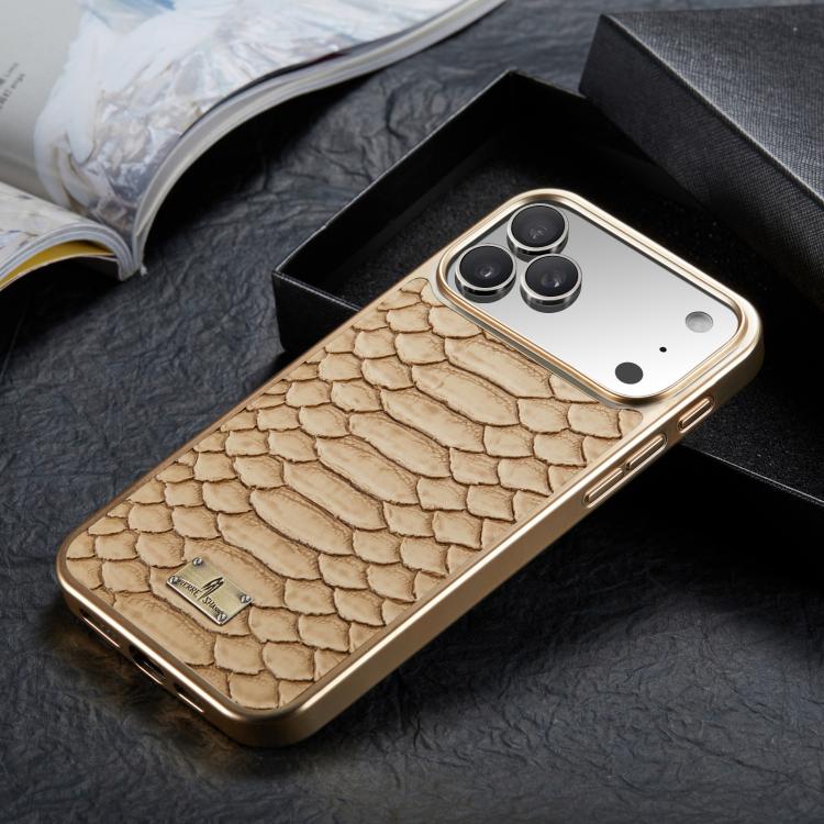 Funda de PU galvanizada con textura de pitón Fierre Shann para iPhone 17 Pro (marrón)