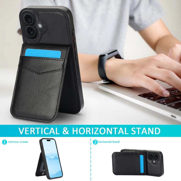 Funda de PU con ranuras para tarjetas para iPhone 17 (color sólido, negro)