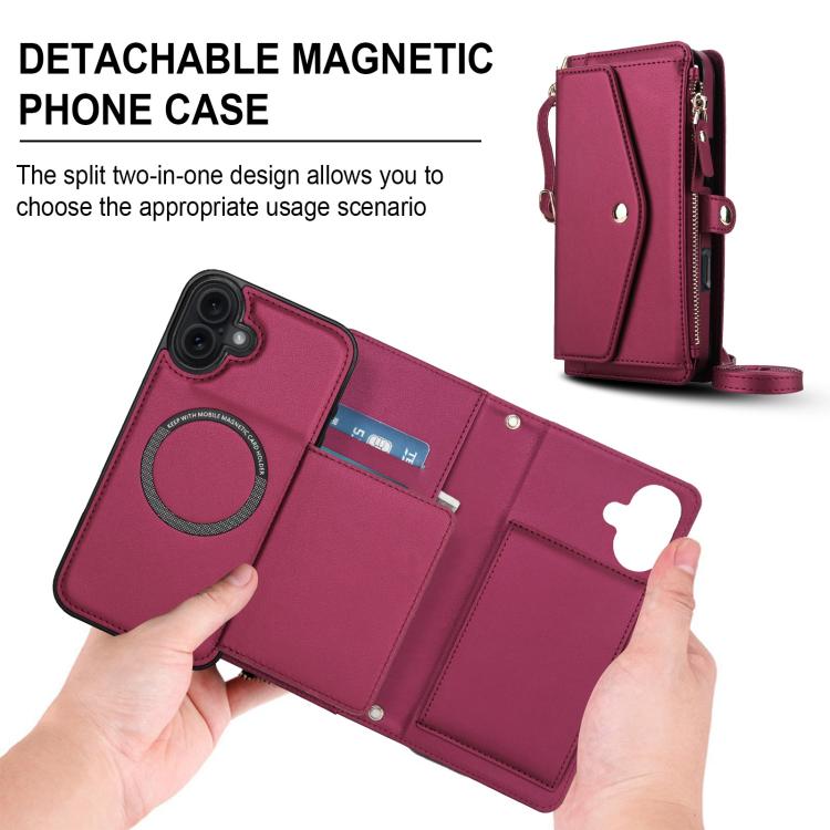 Funda de cuero desmontable con cordón para iPhone 17 (color rojo)