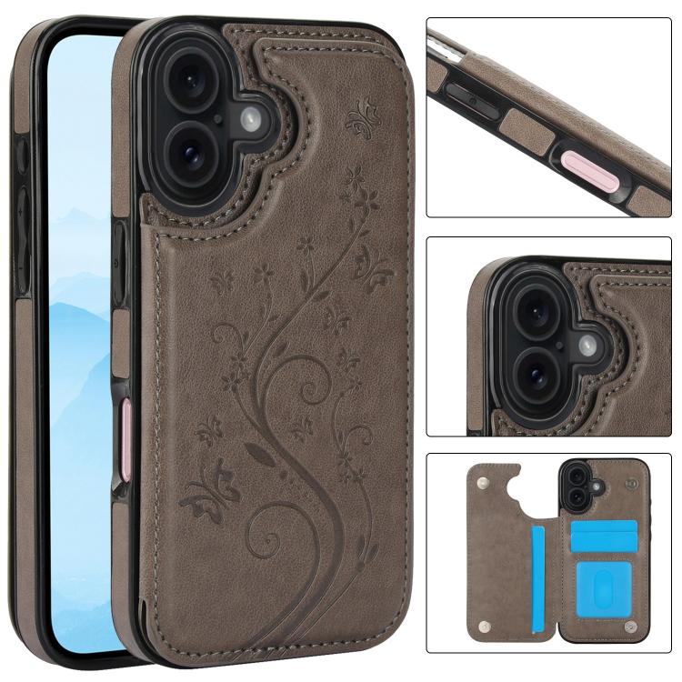 Funda de PU con doble hebilla y estampado de mariposa para iPhone 17 (gris)