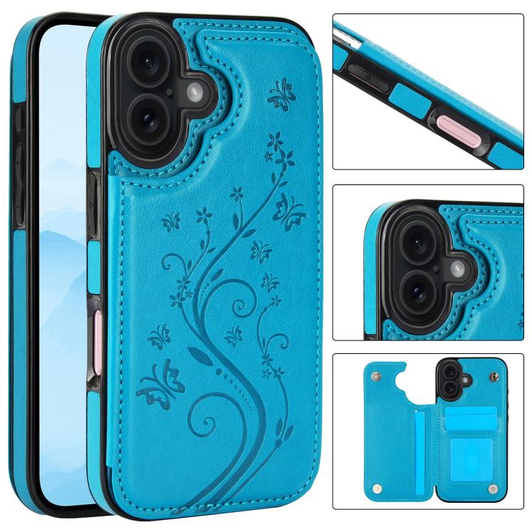 Funda de PU con doble hebilla y estampado de mariposa para iPhone 17 (azul)