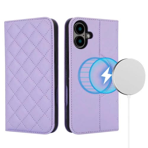 Funda de cuero Rhombic MagSafe RFID antirrobo para iPhone 17 (morada)